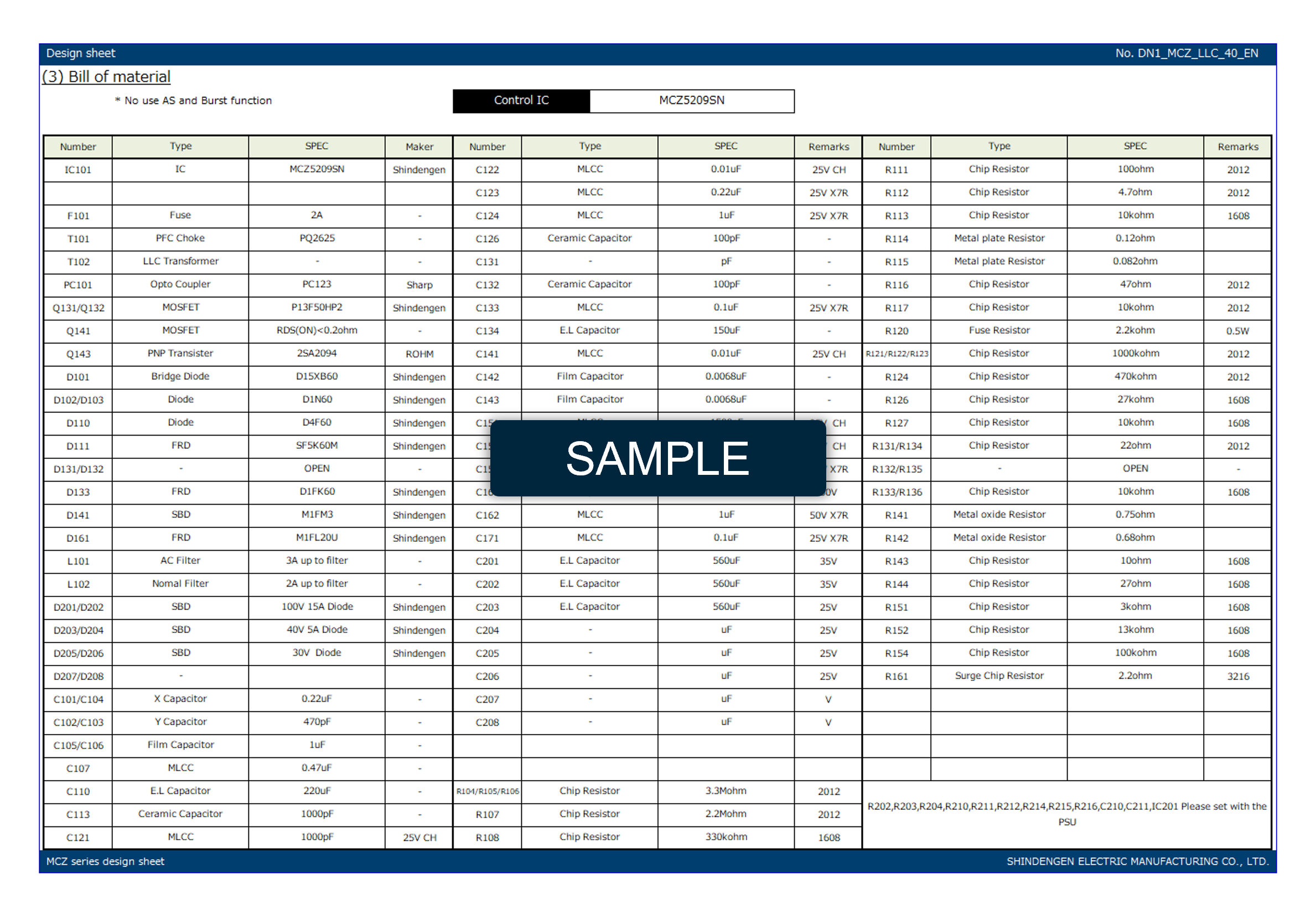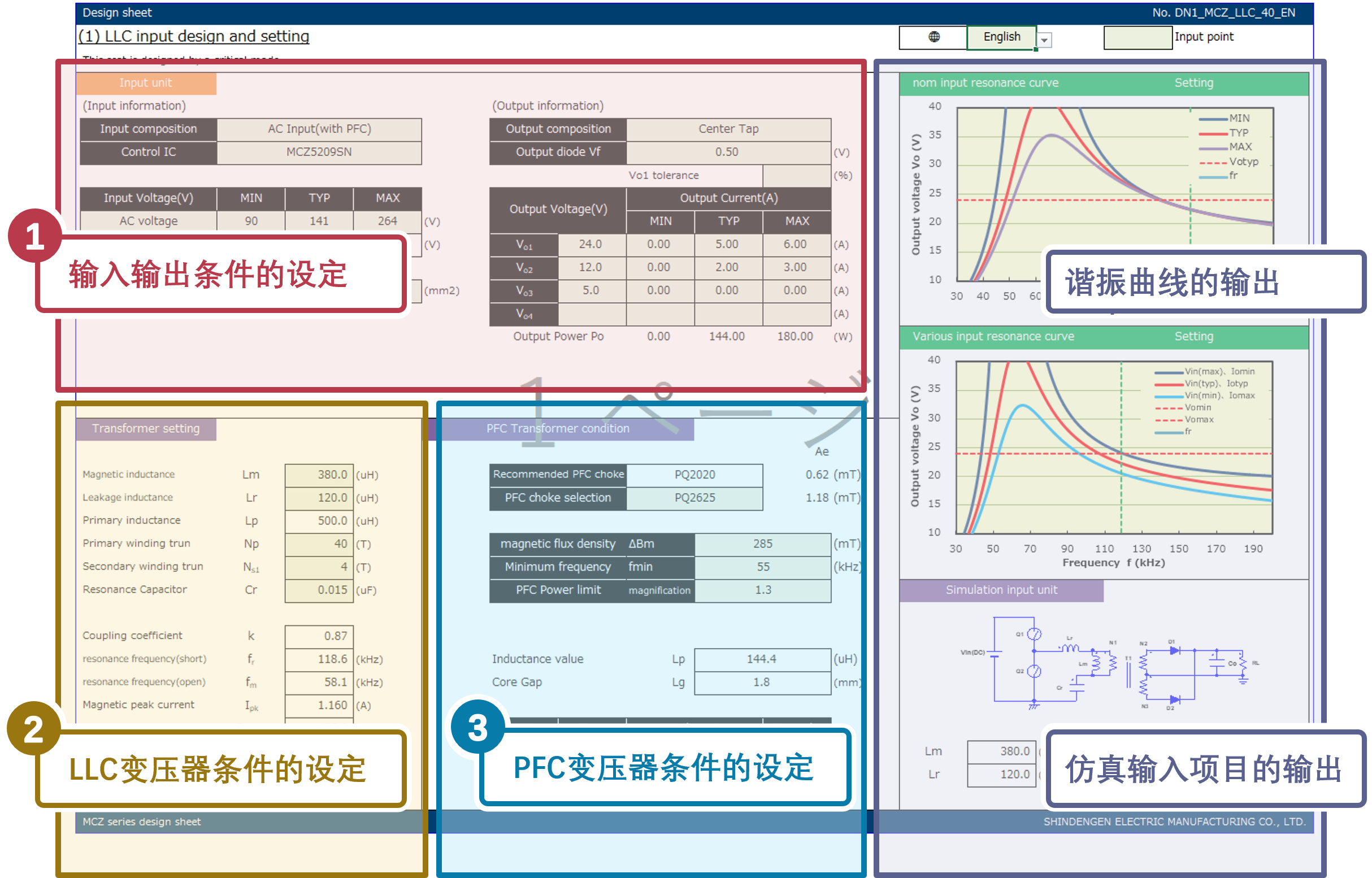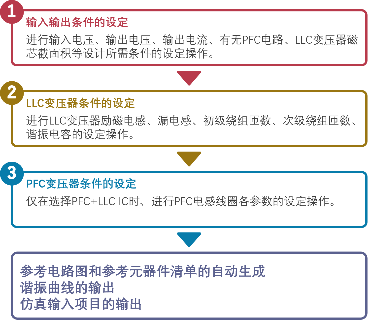 | 本设计工具是在使用本公司LLC电流谐振电源用IC MCZ系列的电流谐振电源电路中设定外围电路参数的辅助工具。 通过设定输入输出电源规格等条件,自动生成参考电路图和元器件清单。 另外还能输出LLC电流谐振电路的谐振条件设计所需的谐振曲线以及进行电路仿真时需要的参数。 希望对您使用MCZ系列的电路设计有所帮助。 |